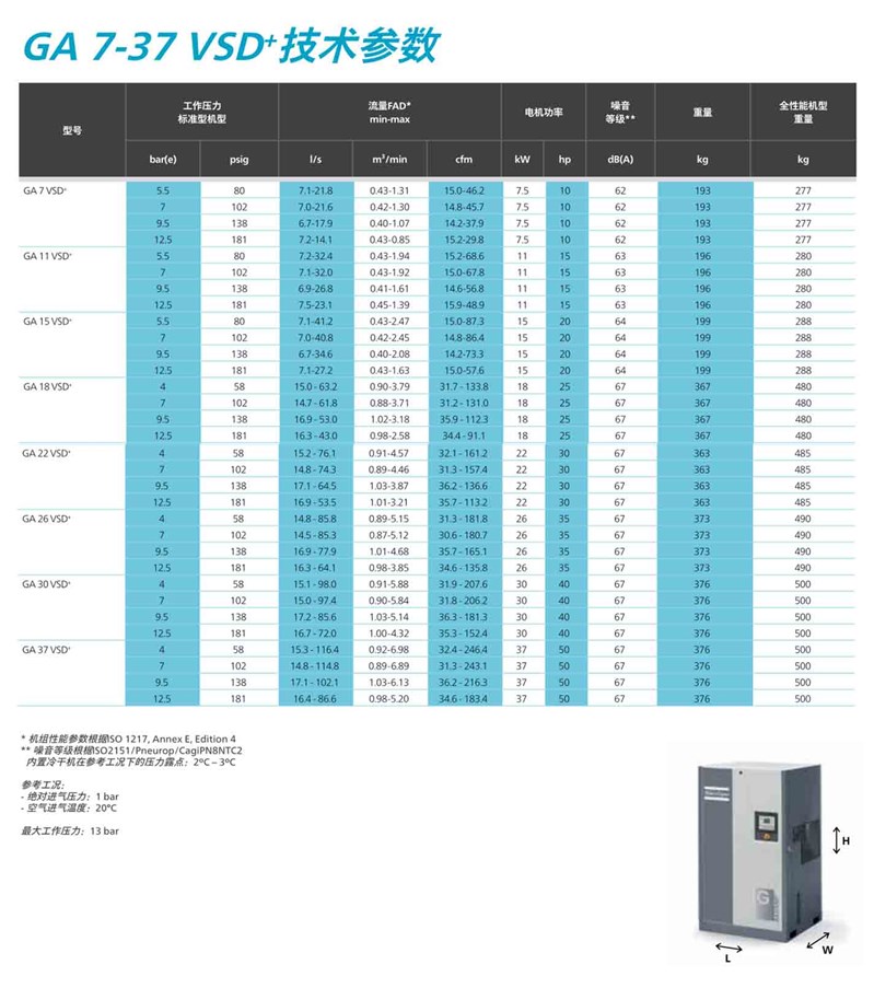 GA 系列符合 ISO 9001、ISO 14001 和 ISO 1217 標準。極低的運營成本,具有長期、無故障的使用壽命