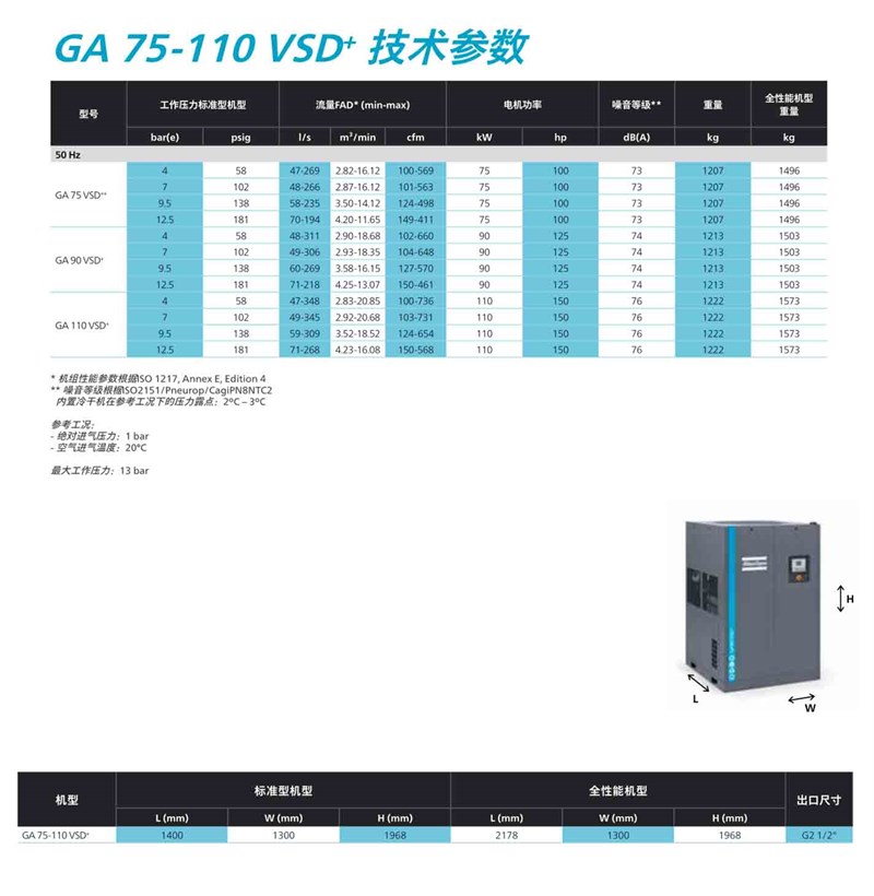 阿特拉斯·科普柯的GA7-110VSD + 系列空壓機標配變轉速驅動,內置永磁電機(IPM),結構緊湊、占地面積小,平均節能高達50%,可在惡劣的工況下穩定運行。GA7-110VSD + 超前的設計,在更長的運行時間內,實現成本縮減,并在壓縮機行業贏得廣泛關注和認可。